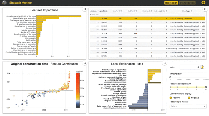 - A web app: To understand how a model works, you have to look at multiple graphs, features importance, and global contribution of a feature to a model. A web app is a useful tool for this.