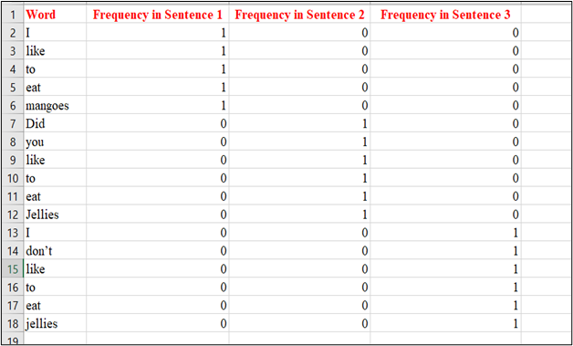 Step 1: Firstly, we go through all the words in the above three sentences and make a list of all of the words present in our model vocabulary.