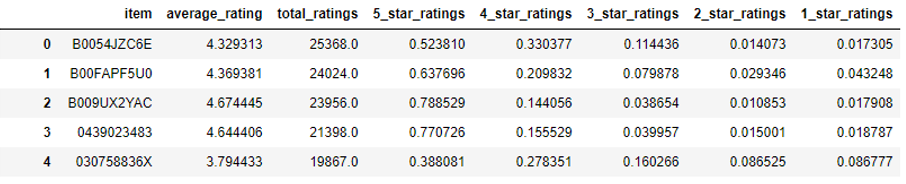 With this information, it was a straightforward process to create a cumulative frequency table for average product ratings of products on Amazon.com. This allowed for the placement of a product with a given average rating into a percentile of all products on Amazon.com, a valuable insight for businesses who sell products on the site.