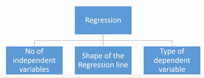 There are various kinds of regression techniques available to make predictions. These techniques are mostly driven by three metrics (number of independent variables, type of dependent variables and shape of regression line).